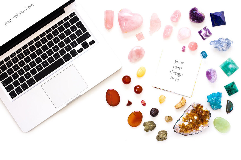 I wanted these images to be both visually appealing and versatile, so you can use them for everything you need. They include white cards where you can overlay your deck designs, and electronics where you can overlay photos of lead magnets, e-books, and any page of your website, and meditations. You can also add text and color overlays (blocks of color) and crop them by zooming into small details, to maximize their usage.